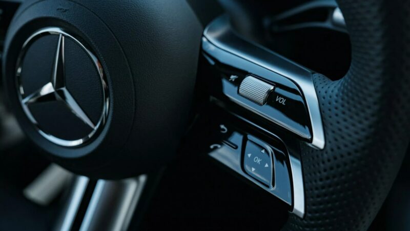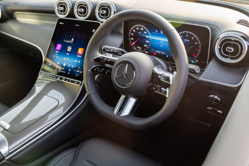 Selain itu, terdapat roda stereng sport balutan kulit nappa, pedal AMG, upholsteri kulit ARTICO, trim kayu Anthracite serta kemasan logam pada konsol tengah.