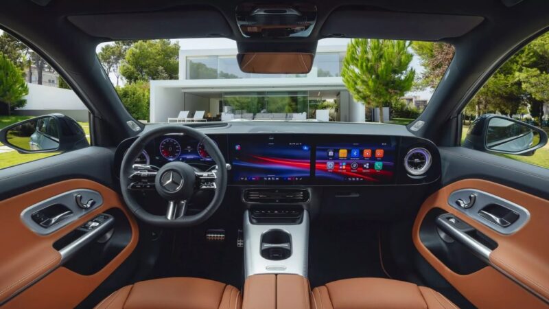 Tidak lagi menampilkan susun atur yang lasak, GLB 2026 kini membawakan tetapan Mercedes Superscreen yang terdiri daripada tiga skrin berasingan (skrin kluster 10.25 inci, skrin infohibur 14 inci, skrin penumpang 14 inci).