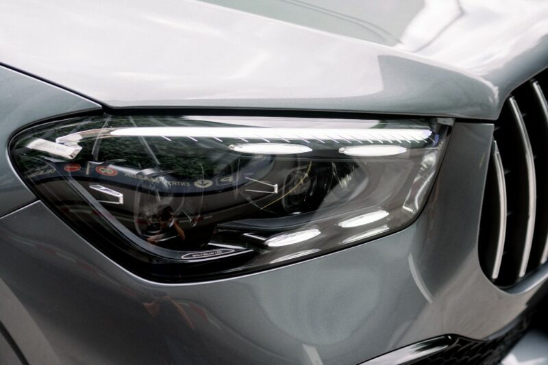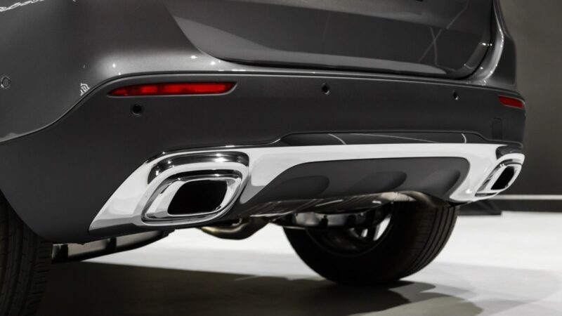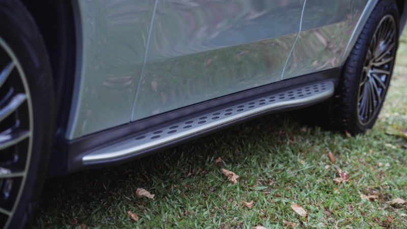 Kelengkapan lain bahagian luaran termasuklah logo Mercedes berwarna Dark Chrome, plat pemijak aluminium, lampu LED sekeliling, dan lampu depan Matrix LED.