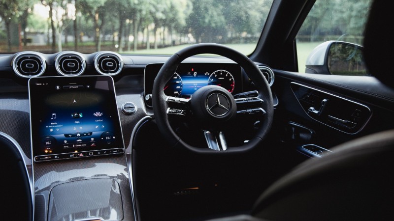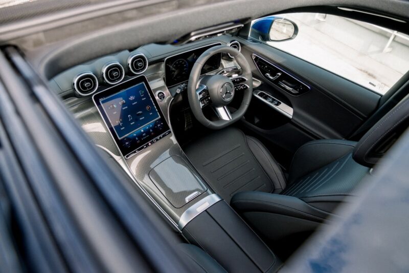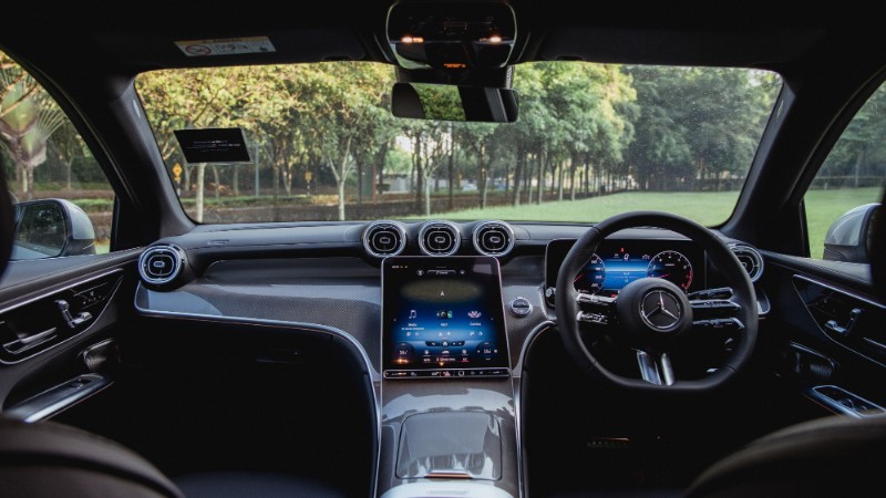 Di dalam kabin pula, Mercedes GLC300 didatangkan dengan kemasan kulit nappa, pakej AMG Line, skrin melengkung dengan paparan instrumen digital, sistem MBUX, sistem penghawa dingin automatic Thermatic, dan Keyless-Go Comfort Package.