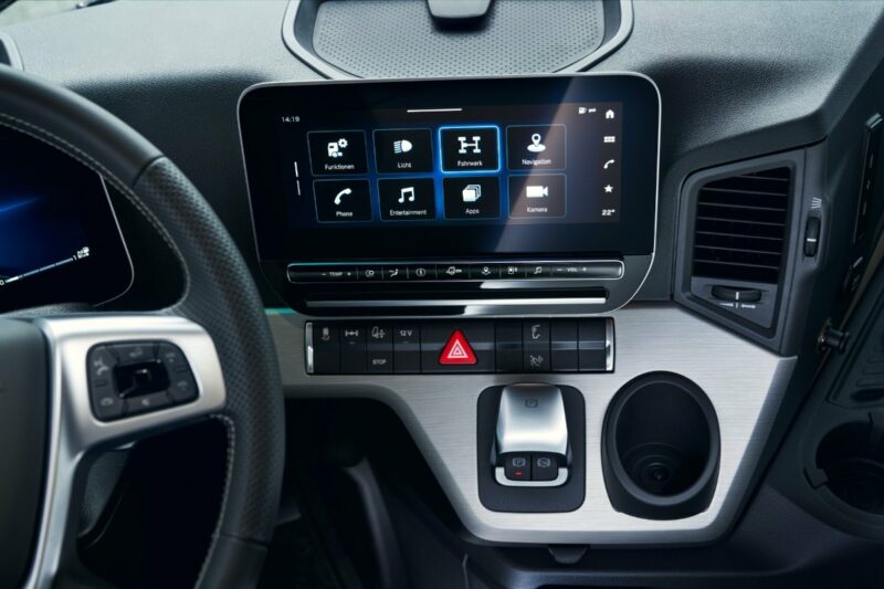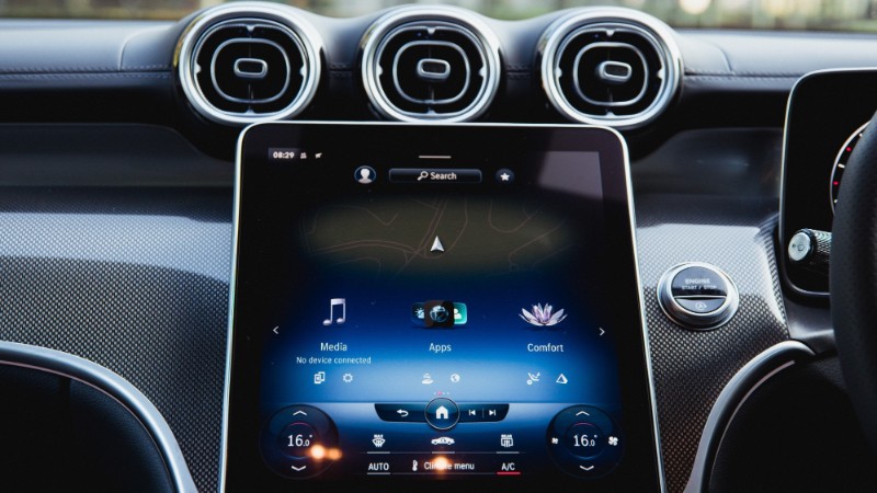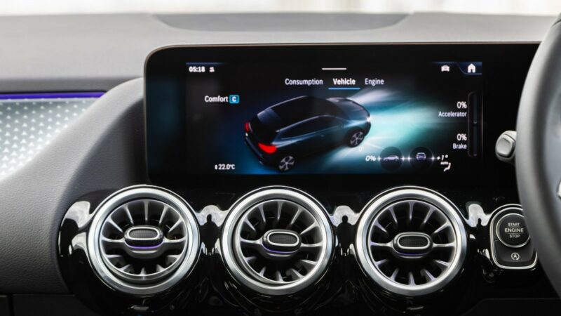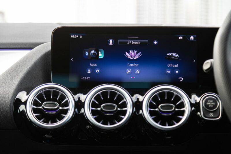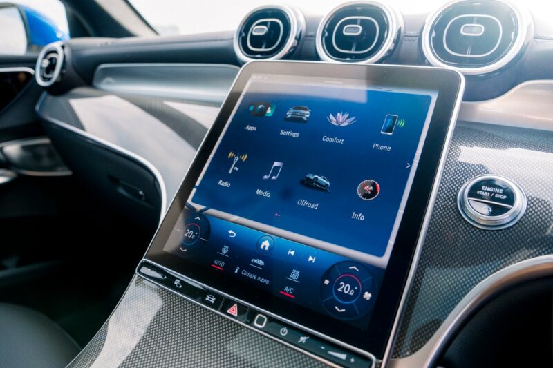 Skrin infotainmen kini menggunakan jenis potret atau menegak, dan disengetkan sedikit ke arah pemandu. Ia menyokong sistem MBUX (Mercedes-Benz User Experience) terkini yang mengandungi pelbagai fungsi seperti multimedia, navigasi, kawalan suhu, dan Android Auto serta Apple Carplay.
