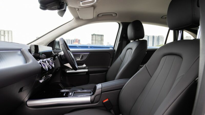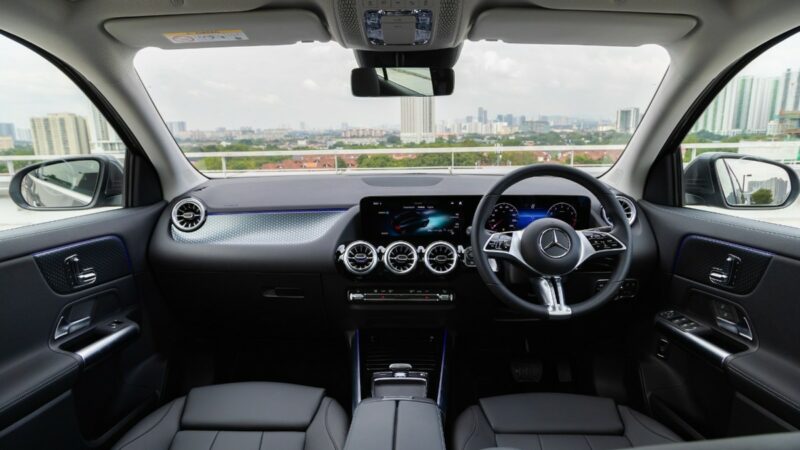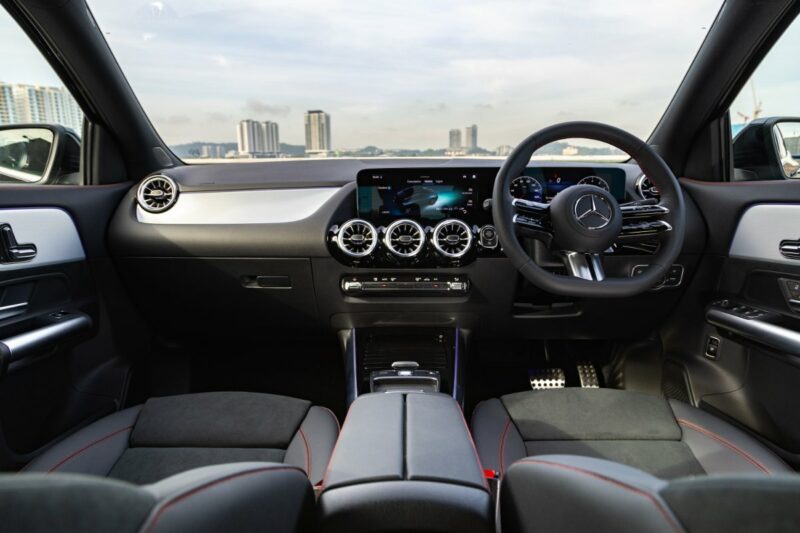 Kabinnya diberikan kemasan Star Pattern untuk kontras menarik. GLA200 2024 juga dilengkapi dengan skrin berkembar 10.25-inci, tempat duduk kulit Artico, stereng sports dengan butang pelbagai fungsi, dan beberapa cara lipatan tempat duduk belakang untuk meningkatkan praktikaliti.