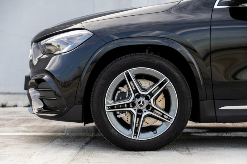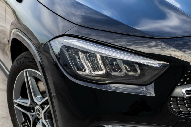 Bahagian luaran Mercedes GLA200 kini menampilkan gril baharu dengan logo besar di tengah, kemasan hitam, dan rim 18-inci aloi lima bilah yang aerodinamik. SUV kompak ini juga mendapat lampu LED High Performance dengan Adaptive Highbeam.