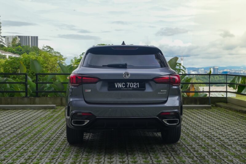 Dari belakang, pinggul yang lebar (boleh dilihat dari cermin sisi) membuatkan MG5 nampak tegap dan stabil di atas jalan raya. Bagaimanapun, penulis kurang berkenan dengan rekaan lampu belakangnya yang jelas ditiru dari Peugeot.