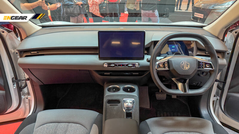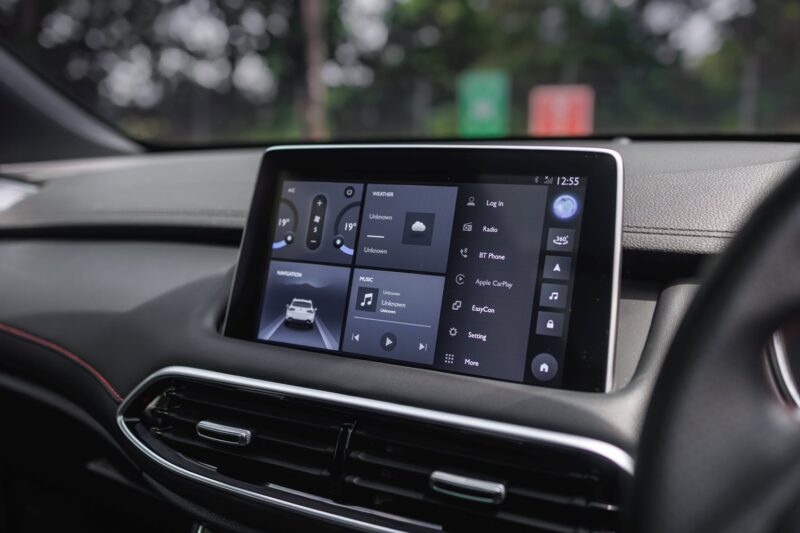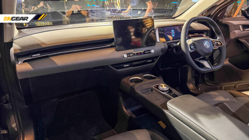 Untuk bahagian kabin, MG S5 menyediakan skrin kluster instrumen 10.25 inci dengan tema paparan yang agak ringkas, diikuti skrin tengah 12.8 inci yang lengkap dengan sokongan Apple CarPlay dan Android Auto.