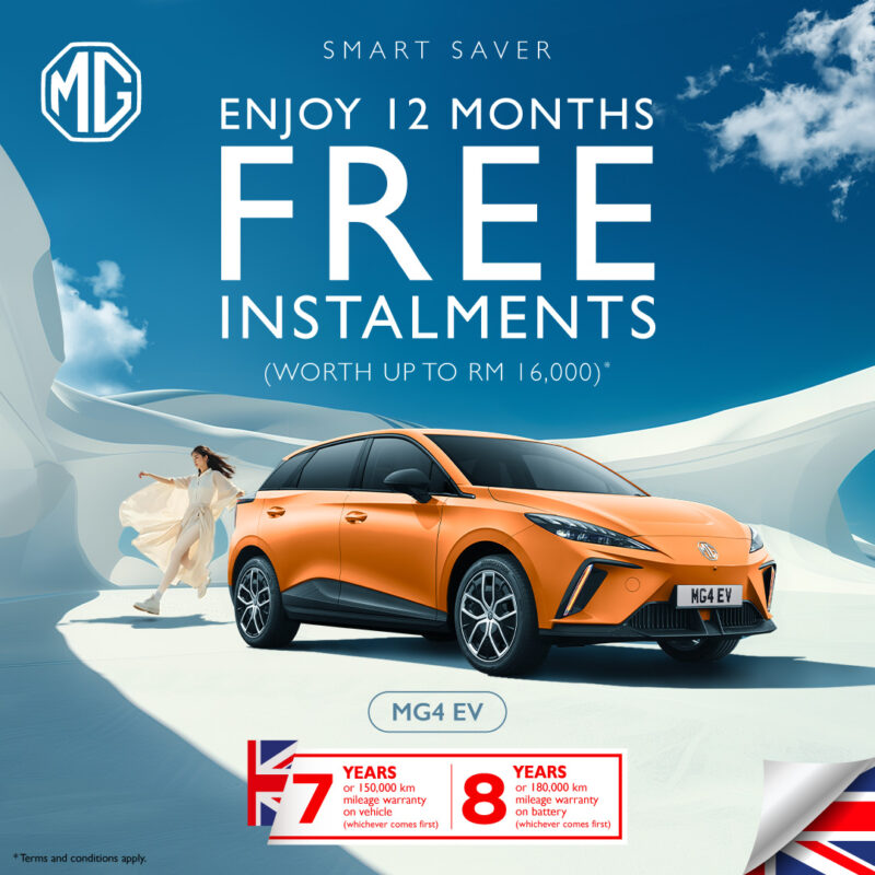 Pelanggan juga boleh menikmati 12 bulan ansuran percuma (RM16,000) untuk model MG4 EV Lux, atau ansuran 8 bulan percuma bernilai RM8,500 untuk model MG4 EV Standard.