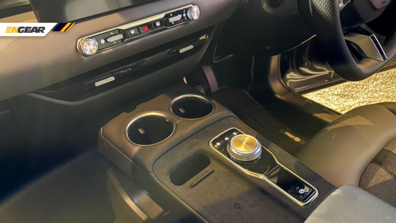 Di bahagian konsol tengah pula menyediakan tombol rotari PRND, ruang meletak cawan, slot untuk peranti pintar serta slot pengecasan tanpa wayar. Ringkas, namun memudahkan.