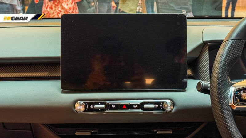 Paling penting, terdapat butang kawalan fizikal yang tersedia di bawah skrin tersebut untuk fungsi penting seperti kawalan suhu dan kelajuan tiupan angin, butang kelantangan audio, serta butang lampu kecemasan.