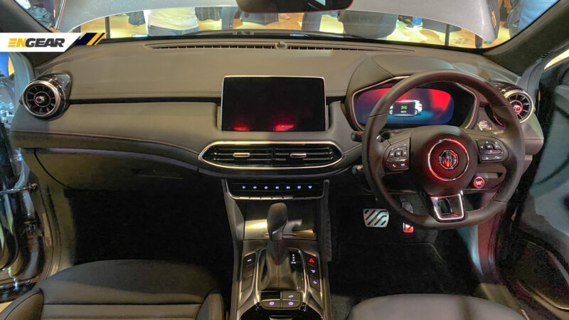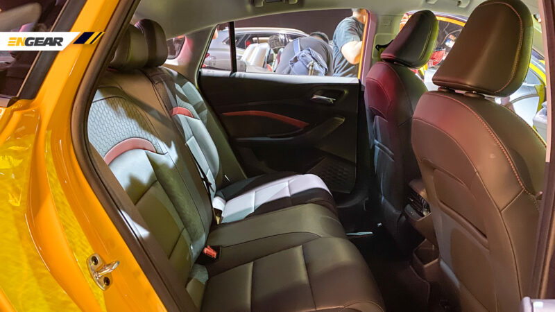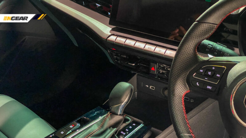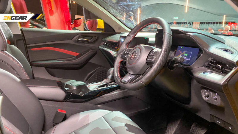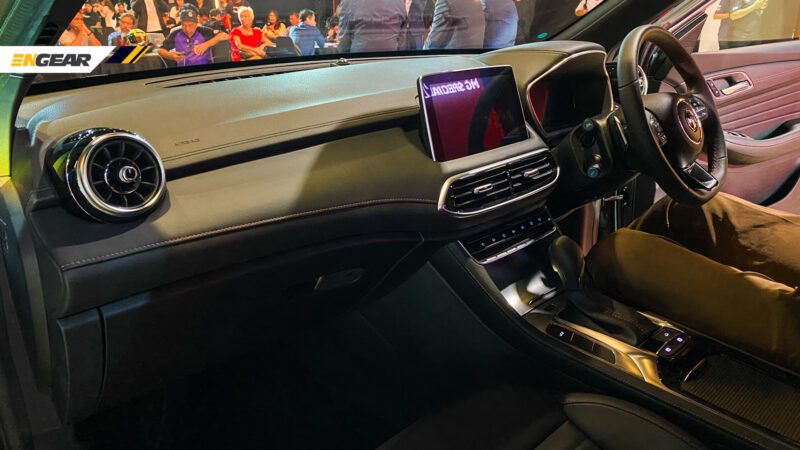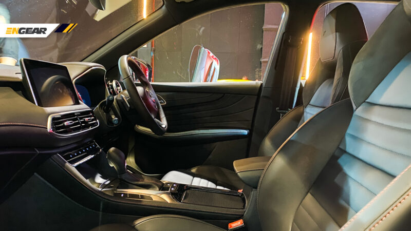 Masuk ke dalam, anda akan menemui upholsteri kulit hitam dengan jahitan kontras merah, serta ciri-ciri moden seperti panel instrumen digital tujuh inci, serta skrin infohibur 10.25 inci dengan sokongan Apple CarPlay dan Android Auto.