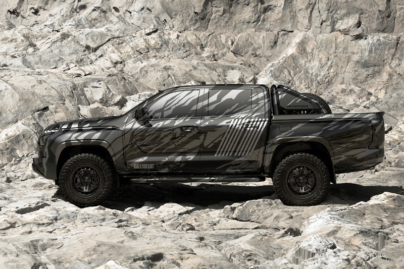 Dari sisi, Triton baharu tampak gagah dengan adanya overfender dan tayar M/T, sementara bahagian belakang turut diberi sentuhan segar menerusi lampu baharu dan spoiler pada bahagian tailgate.