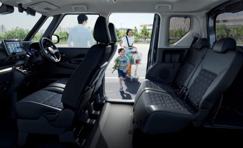 Untuk memudahkan penumpang keluar dan masuk, Delica Mini mempunyai pintu belakang jenis gelongsor yang menawarkan bukaan sehingga 650 mm serta lantai yang rata. Turut disertakan adalah sensor kaki yang membolehkan penumpang membuka pintu secara automatik tanpa menggunakan tangan.