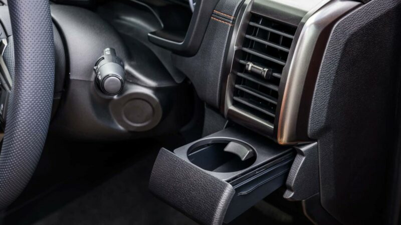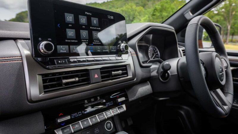 Ruang dalaman juga menerima pembaharuan, walaupun masih terdapat meter analog. Kawalan pendingin hawa berasingan di bawah skrin infotainmen, menggunakan dua tombol berpusing. Penukaran antara 2WD dengan 4WD juga mudah, dengan hanya butang di konsol tengah.