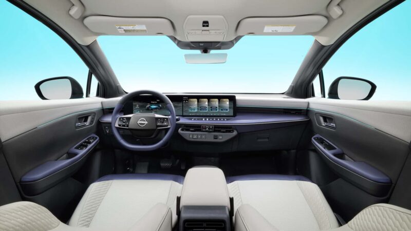 Susun atur papan pemuka berorientasikan pemandu yang wujud pada Renault 5 diterapkan sepenuhnya pada Nissan Micra EV.