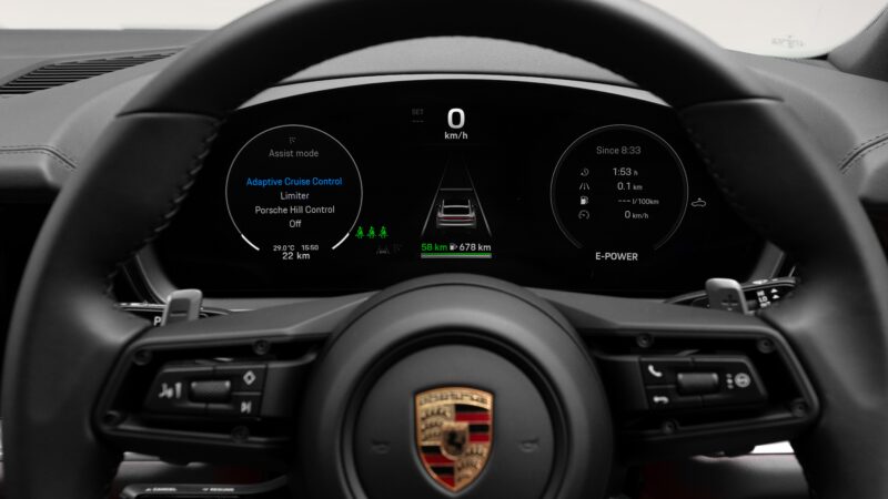 Pilihan Teknologi (Dipilih oleh James May): Sistem audio Bose, Porsche Communication Management (PCM) dengan navigasi, kawalan jelajah (cruise control), pengelap belakang dan cermin depan berwarna kelabu atas.