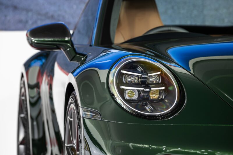 911 GT3 Touring tampil menarik dalam warna eksklusif Forest Green Metallic (Paint to Sample), yang dipilih untuk membangkitkan lapisan dedaun, bayangan dan cahaya hutan hujan Amazon.