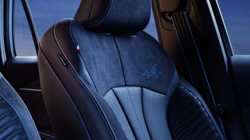 Untuk ruang kabin pula, terdapat kemasan fabrik mampan, emblem bendera Alpine dan Perancis, jahitan biru pada papan pemuka dan pedal aluminium.