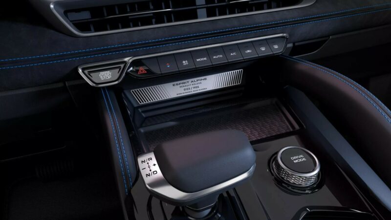 Renault turut sama mempamerkan varian Esprit Alpine yang lebih premium, menampilkan aksen biru, lencana Alpine, rim aloi sebesar 20 inci, diikuti dengan kemasan kabin tema gelap berserta kemasan Alcantara dan jahitan biru.