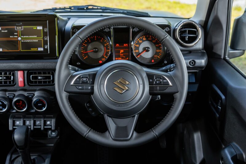 Bagaimanapun, selain daripada ciri-ciri yang disebutkan ini, Jimny tidak mempunyai sebarang ciri yang boleh dikategorikan sebagai premium atau mewah. Maksud penulis, setiap permukaan kecuali stereng adalah plastik keras, manakala kerusinya pula dibalut fabrik dan hanya boleh dilaras secara manual.