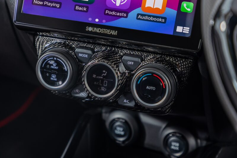 Tidak cukup dengan itu, kemasan gentian karbon turut digunakan pada panel instrumen, suis pendingin hawa dan pintu, sekali gus menaikkan lagi suasana sporty di dalam kabin.