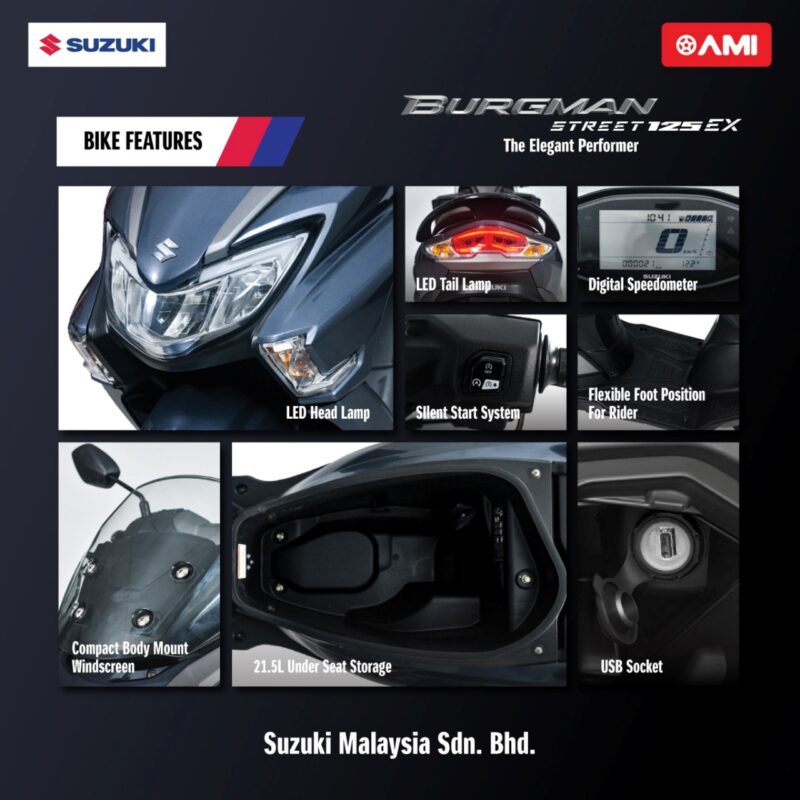 Untuk makluman, Suzuki Burgman ini mempunyai kelebihan yang tersendiri berbanding Avenis, iaitu Suzuki Eco Performance Alpha (SEP-a) untuk tunggangan yang lebih jimat bahan api, diikuti dengan fungsi Auto Start-Stop.