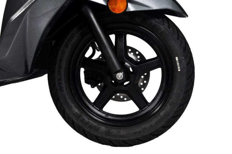 Tayar standard MRF bersaiz 90/90 depan dan 100/80 belakang juga menawarkan kadar cengkaman yang bagus baik di atas jalan kering atau jalan basah.
