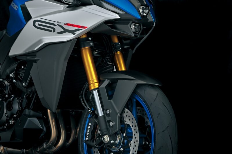 Untuk sistem suspensi, GSX-8S menggunakan fork terbalik 41 mm dan penyerap hentak tunggal, kedua-duanya keluaran Kayaba, manakala tugas membrek pula diserahkan kepada cakera 310 mm di depan dan 240 mm di belakang, berserta angkup Nissin.