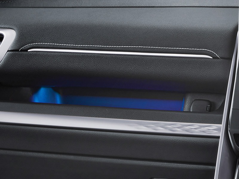Di bahagian dalam, ia menampilkan konfigurasi tujuh tempat duduk dengan baris kedua dan ketiga yang boleh dilipat untuk pelbagai keperluan. Tempat duduknya mendapat balutan kulit, selain lampu ambient biru di panel pintu dan konsol tengah.