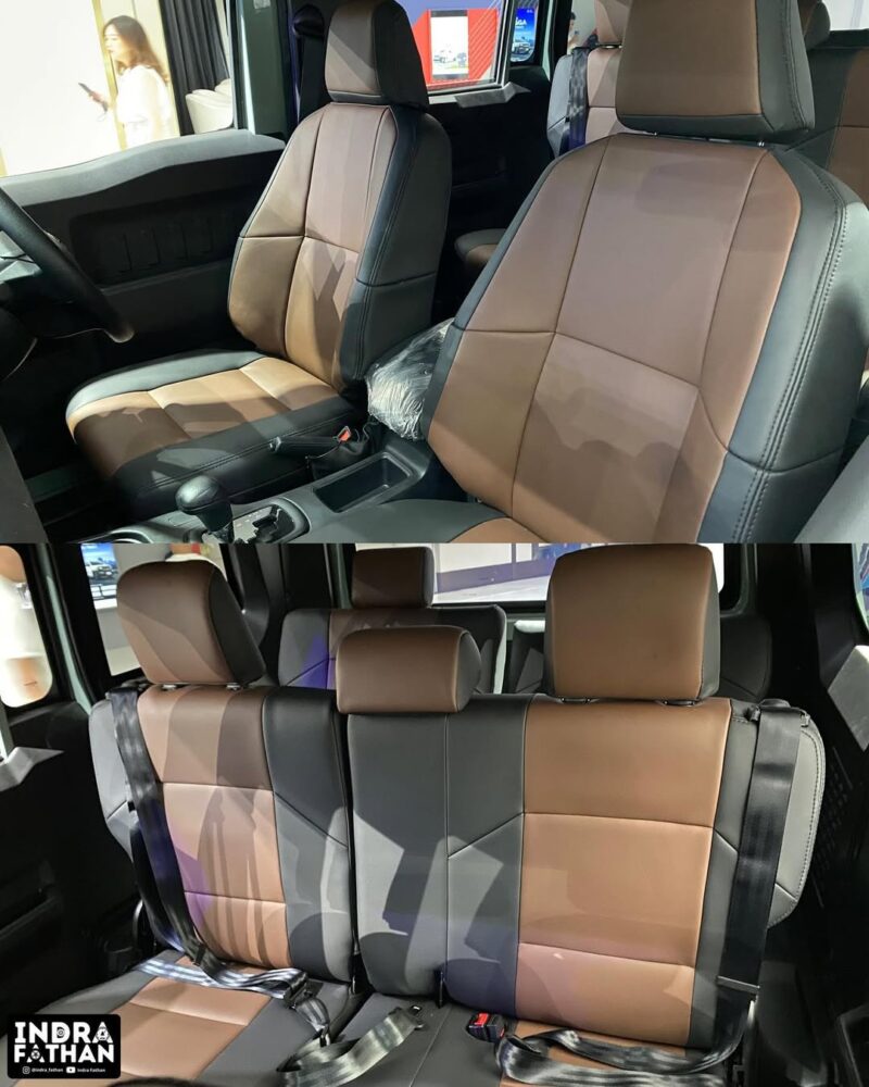 Ruang kabin Rangga SUV menampilkan susunan tempat duduk 2+3+2 yang dibaluti bahan seakan kulit.