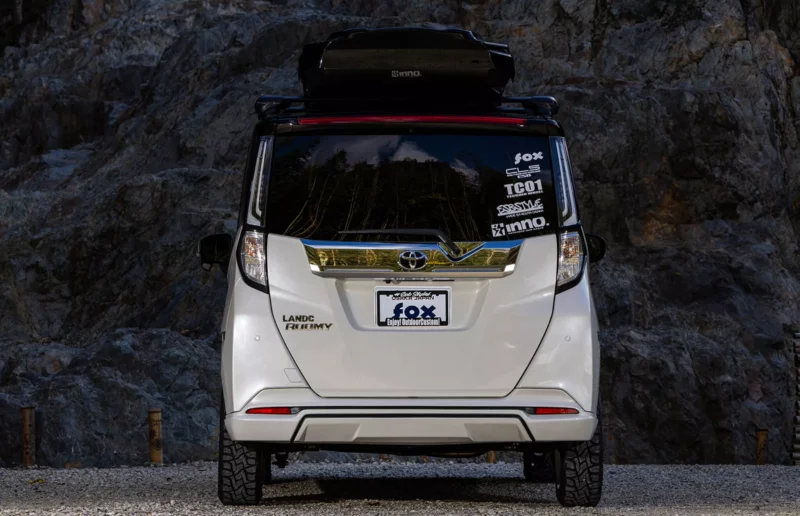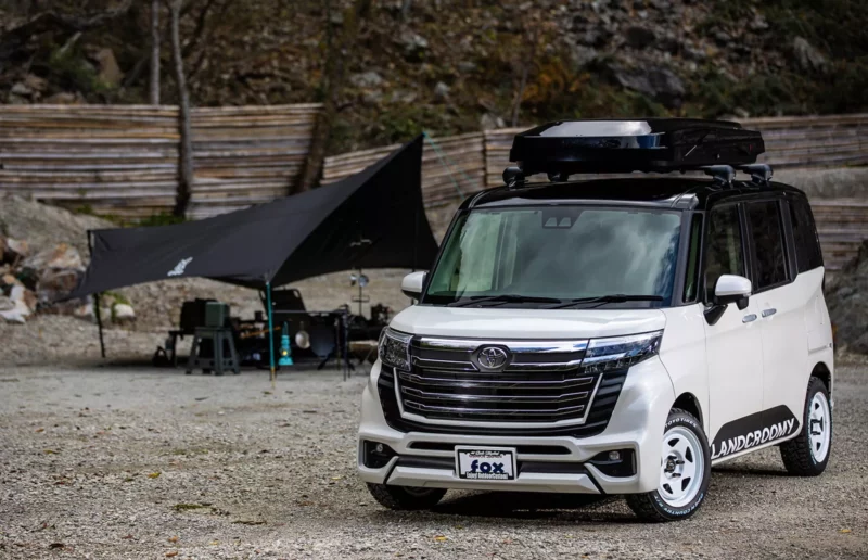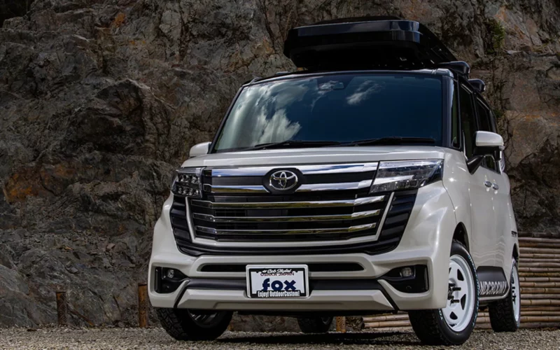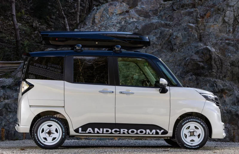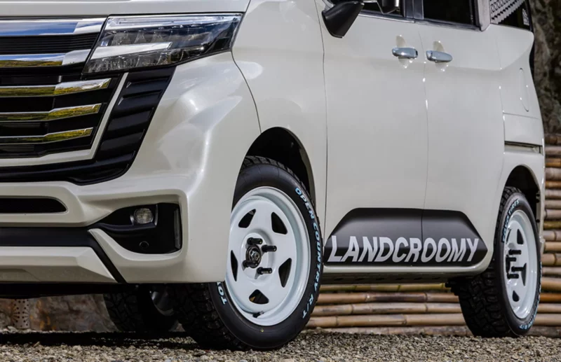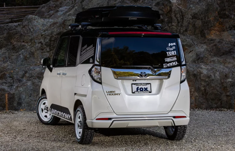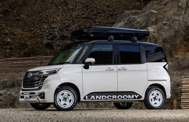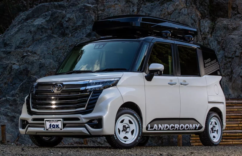 Pakej yang digelar sebagai ‘Landc Roomy’ itu meminjam beberapa elemen rekaan Land Cruiser, seperti contoh struktur jeriji yang besar dan lebar lengkap dengan bampar yang agresif.