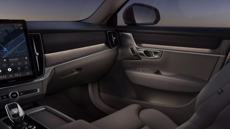 Untuk kabin, Volvo S90 dibekalkan dengan skrin tengah sebesar 11.2 inci yang turut hadir dengan fungsi kemas kini over-the-air (OTA), selain fungsi penebatan bunyi untuk kabin yang lebih senyap.