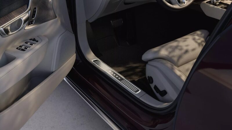 Volvo ES90 didatangkan dengan tetapan suspensi udara aktif, lampu utama dengan rekaan grafik tukul Thor, serta lampu belakang LED berbentuk C.