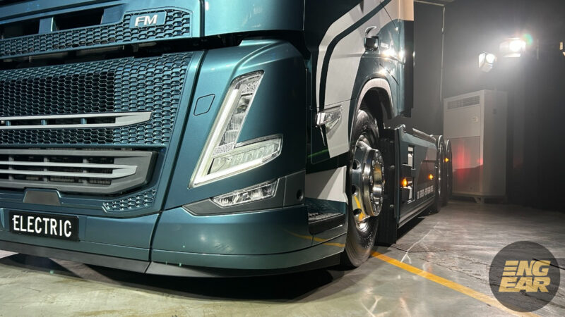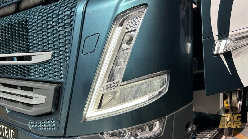 Trak Volvo EV ini mendapat lampu LED berbentuk “V” yang bukan hanya untuk suluhan cemerlang dalam gelap, tetapi juga memberikan identiti menyerlah bila dilihat dari jauh.