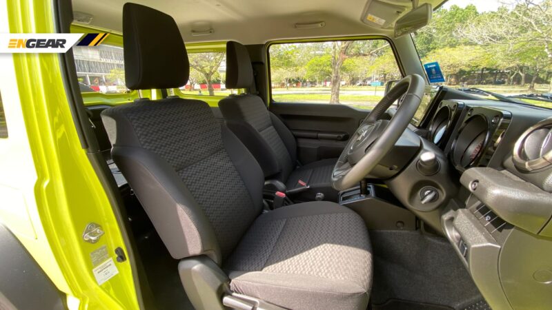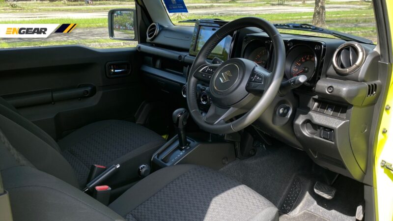 Bagaimanapun, selain daripada ciri-ciri yang disebutkan ini, Jimny tidak mempunyai sebarang ciri yang boleh dikategorikan sebagai premium atau mewah. Maksud penulis, setiap permukaan kecuali stereng adalah plastik keras, manakala kerusinya pula dibalut fabrik dan hanya boleh dilaras secara manual.