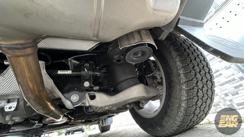 Tetapi sistem suspensinya yang agak lembut memberikan sensasi unik. Defender ini akan mendongak bila pedal minyak ditekan agak banyak selepas keluar palang tol, ditemani dengan bunyi garau enjin ke dalam kabin.