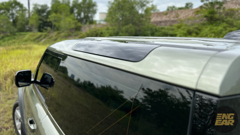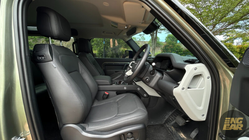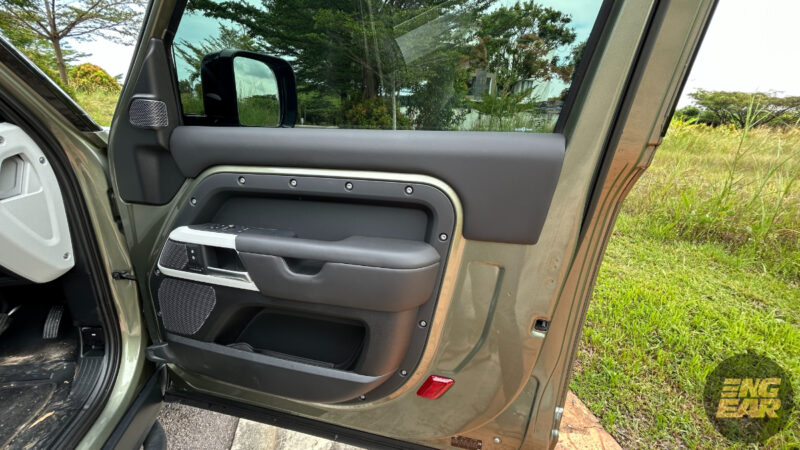 Penulis juga cukup suka dengan beberapa bahagian dalam pintu yang mendedahkan warna cat badan Defender, menunjukkan ia sebuah kenderaan rugged. Ia juga suatu ciri yang dibawa dari Defender klasik sebelum ini.