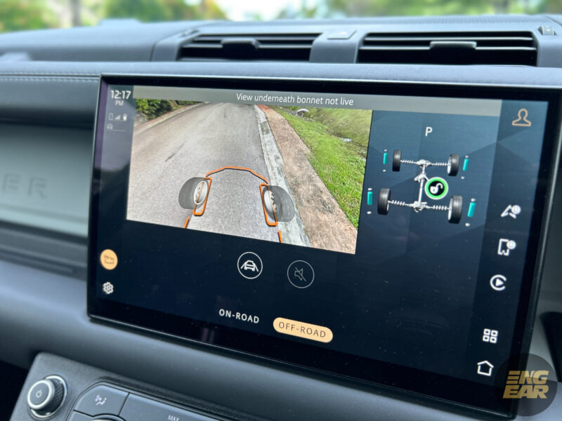 Penulis juga cukup suka dengan 3D Surround Camera, yang memaparkan imej seolah-olah but depan lutsinar. Ia menggunakan kamera untuk menunjukkan apa yang ada di bawah enjin kenderaan, jadi mudah untuk anda mengemudi Defender ini di laluan sempit atau off-road seperti di atas batu.