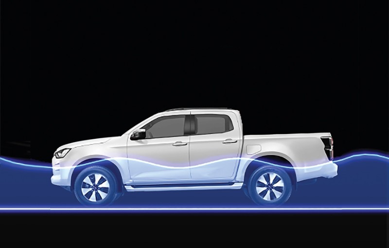 Nissan Navara Baharu (kecuali Single Cab) dilengkapi suspensi belakang jenis Multilink dengan Dual-Rate Coil Springs (Rear Multilink Suspension with Dual-Rate Coil Springs bagi mengurangkan pergerakan badan kenderaan.