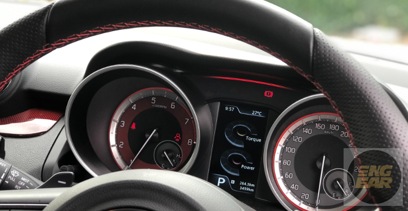 Sungguh lazat mengambil selekoh dengan stereng Swift Sport ini kerana kita akan rasa mempunyai banyak kawalan ke atasnya. Malah anda pandu kereta ini pada kelajuan 30km/j pun boleh rasa yang stereng ini bukan calang-calang.