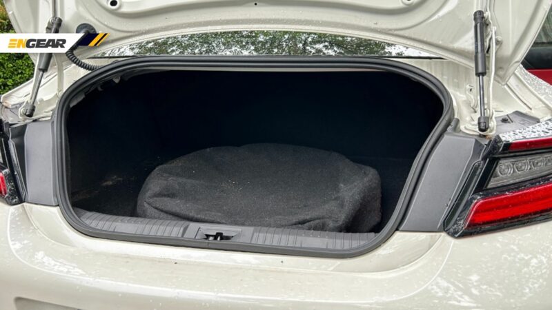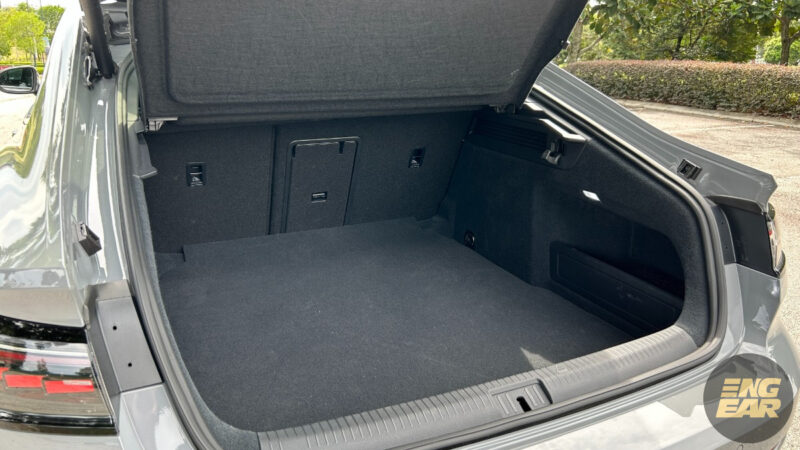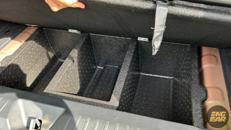 Ketiadaan tayar simpanan membolehkan ruang simpanan tersembunyi yang lebih besar tersedia pada bahagian belakang.