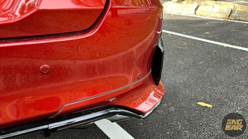 Reka bentuk sedan fastback, rim 17 inci, diffuser, elemen aerodinamik serta padanan kit badan juga sedikit sebanyak menyumbang kepada rupa paras agresif sedan ini