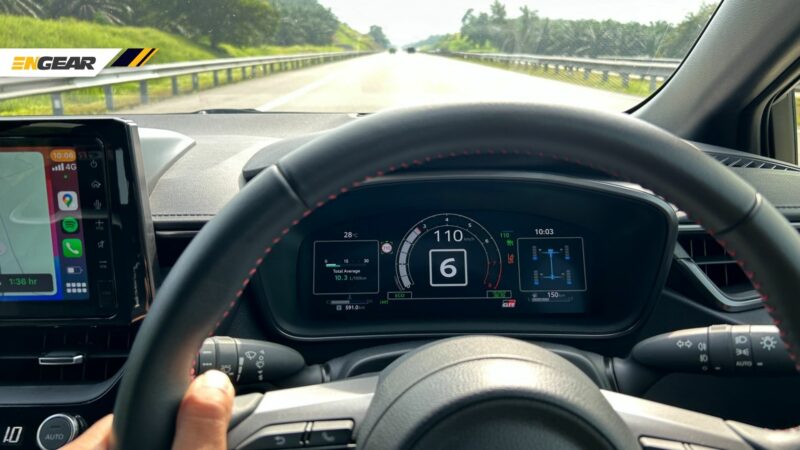 Salah satu daripadanya ialah skrin kluster digital dengan beberapa pilihan paparan grafik yang boleh diubah. Kalau tak suka dengan paparan analog, boleh pilih paparan meter sekaan GR Corolla.
