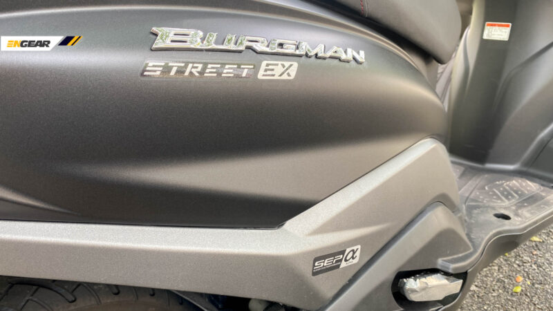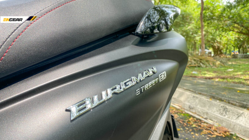 Disebabkan warna tersebut, ia menjadikan penampilan Burgman Street EX ini nampak lebih premium, ditambah pula dengan kekemasan pemasangan setiap sudut panel skuter ini.