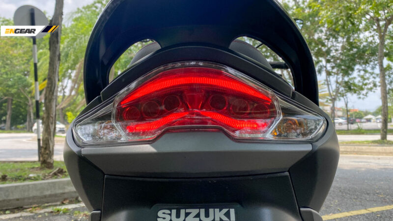 Suspensi belakang Burgman Street EX ini memang ditala sedikit keras untuk keseronokan tunggangan di selekoh, namun ia bukanlah senjata yang ampuh bila memasuki lorong motosikal kebanyakan lebuh raya.