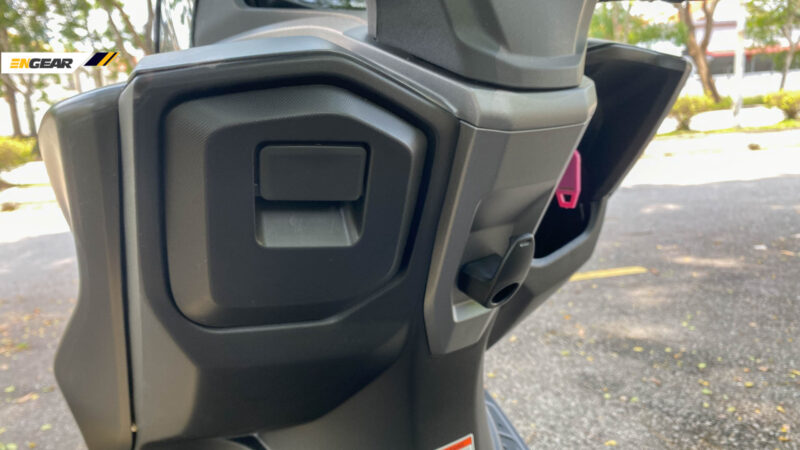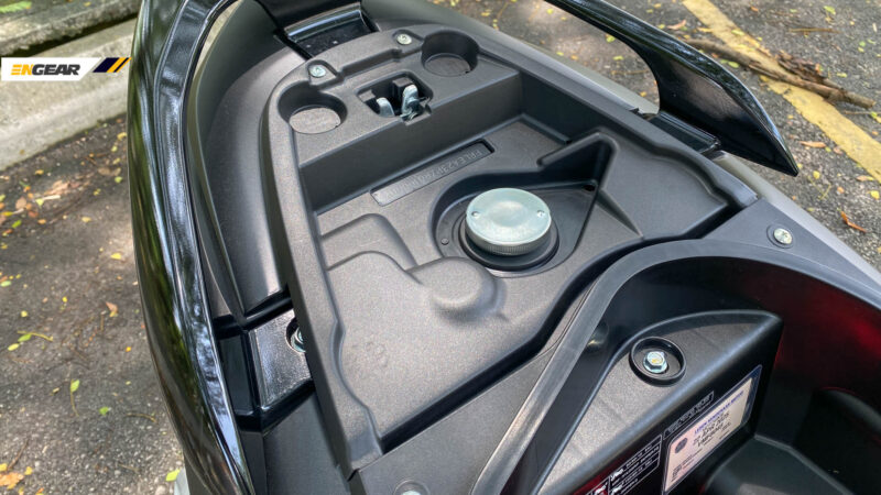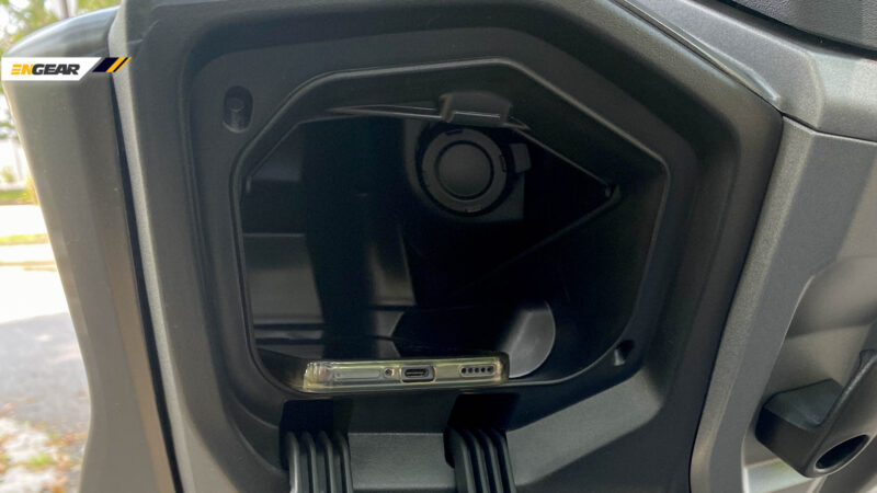 Terdapat tempat untuk meletakkan barangan kecil, lengkap dengan soket USB pada bahagian hadapan, sementara bawah pelana pula ada ruang sebesar 21.5 liter.