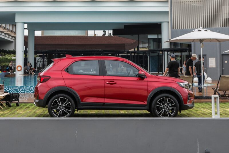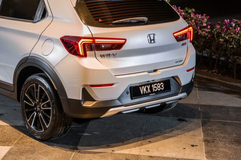 Dari sisi, garisan karakter yang ‘ditarik’ dari hadapan hingga ke belakang, bumbung yang tidak terlalu tinggi, sert.a rim dua tona berukuran 17 inci (varian RS sahaja) memberikan WR-V imej sporty yang digemari golongan muda