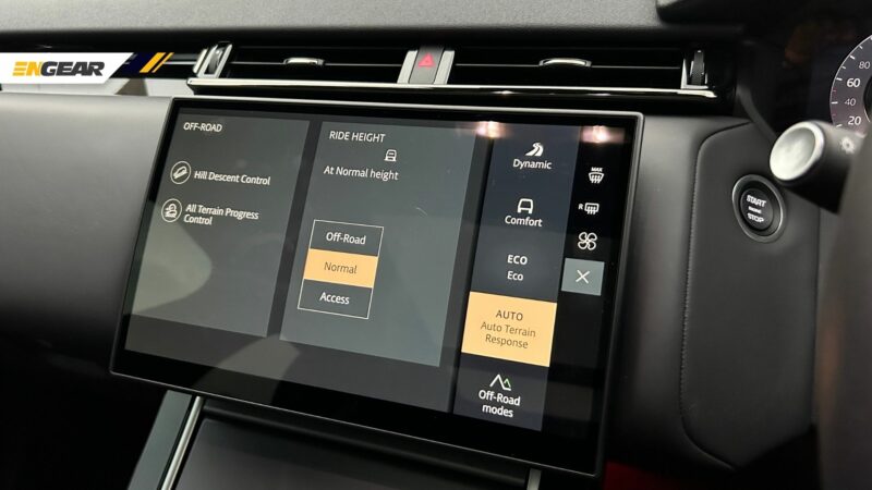 Malah ada dua tahap ketinggian untuk Off-Road, bergantung kepada keperluan anda. Lagipun sesebuah Range Rover – sama ada anda mahu guna atau tidak – perlulah boleh off-road. Ya, semua Range Rover direka untuk off-road walaupun rupa bentuknya seperti SUV pejabat.