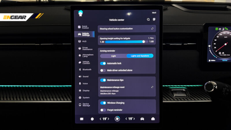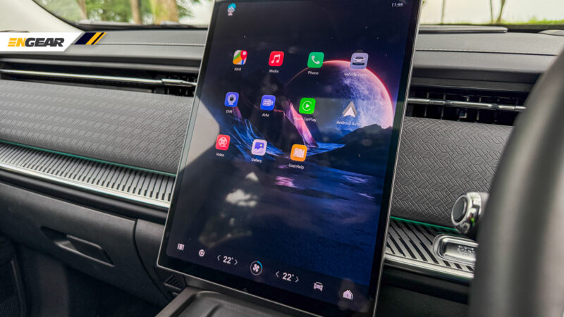 Skrin tengah bersaiz 13.2 inci itu menempatkan segala macam fungsi dan tetapan termasuklah kawalan pendingin hawa dan segala macam fungsi keselamatan yang boleh diubah.