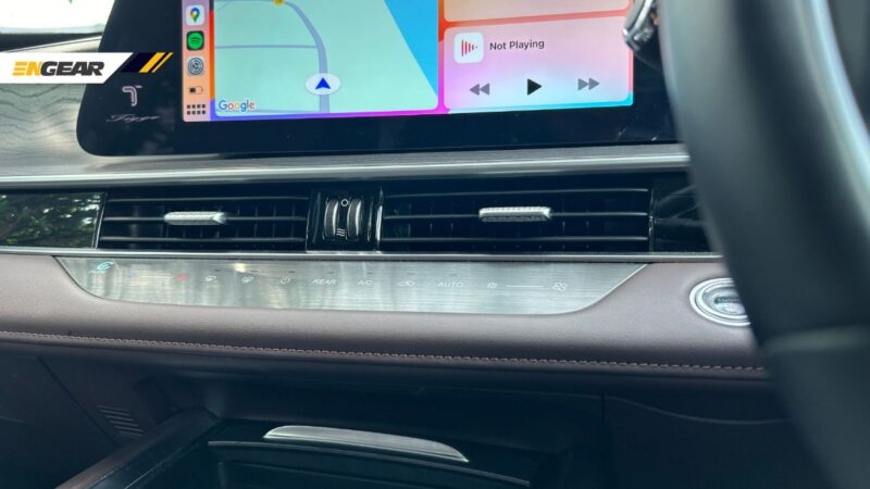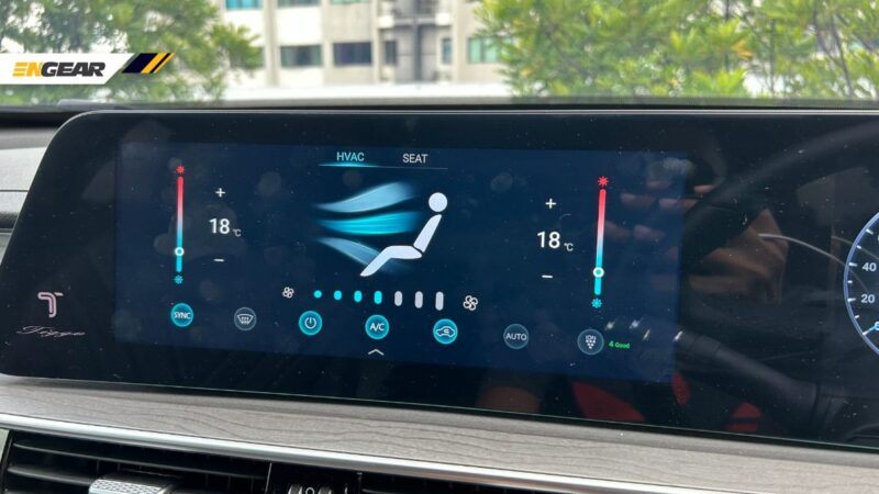 Gugusan butang fungsi bersaiz besar pula memudahkan urusan untuk mengubah tetapan seperti sistem pendingin hawa, mod pemanduan, atau sekadar memastikan penumpang hadapan tidur dengan lebih selesa dengan adanya fungsi pemanas dan pengudaraan terbina untuk tempat duduk.