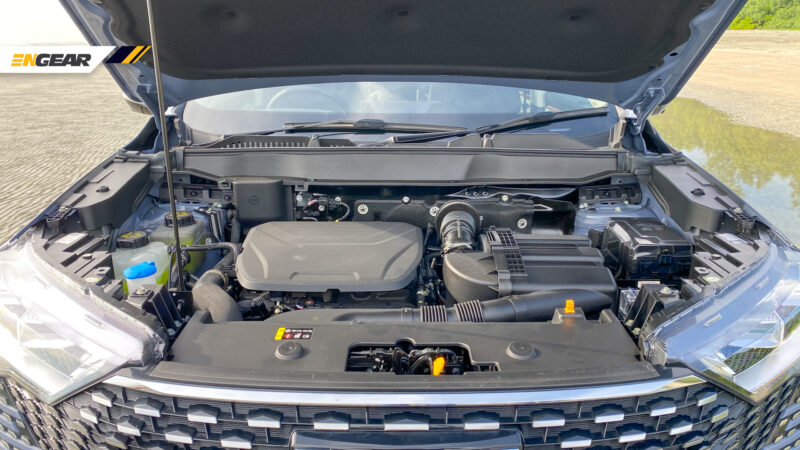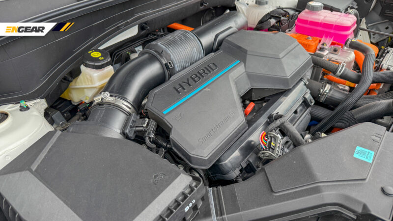 Santa Fe Hybrid yang kami pandu uji ini dikuasakan oleh enjin empat silinder sebaris Smartstream G1.6 T-GDI menghasilkan 180 PS @ 5,500 rpm dan daya kilas 265 Nm @ 1,500-4,400 rpm.