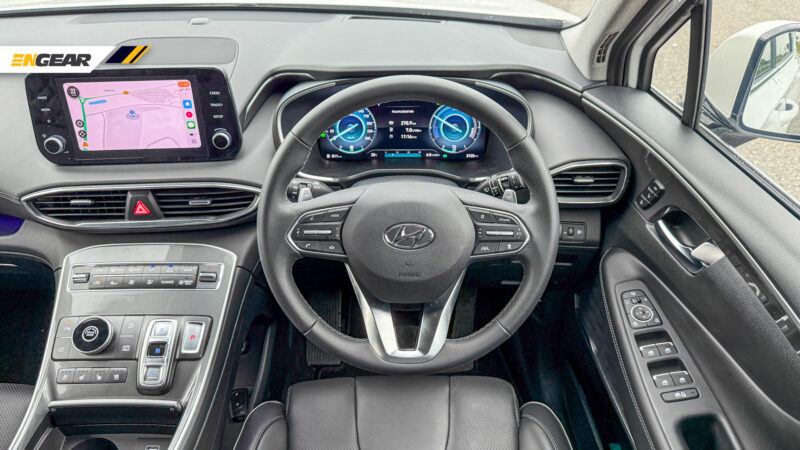 Untuk pemandu pula, Santa Fe Hybrid menyediakan skrin kluster digital dengan pilihan paparan grafik meter analog yang mudah untuk dibaca, serta skrin infohibur sebesar lapan inci yang lengkap dengan sokongan Apple CarPlay/Android Auto tanpa wayar.